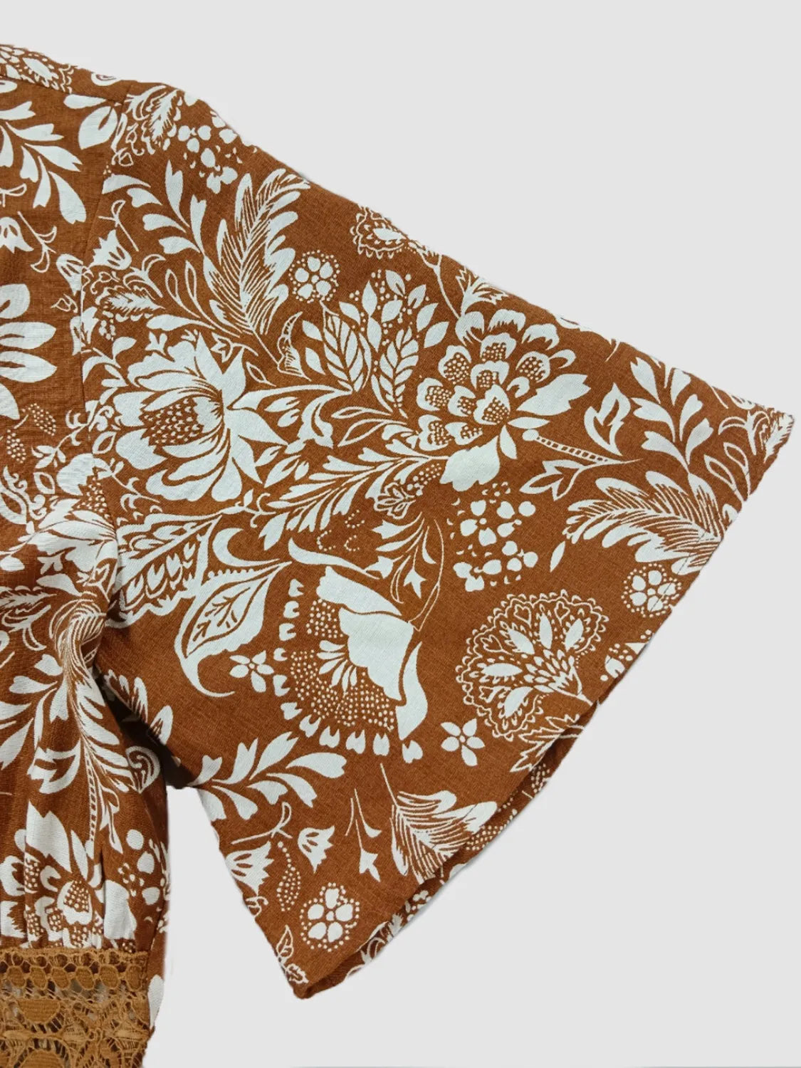 Lace Detail Printed Short Sleeve Midi Dress