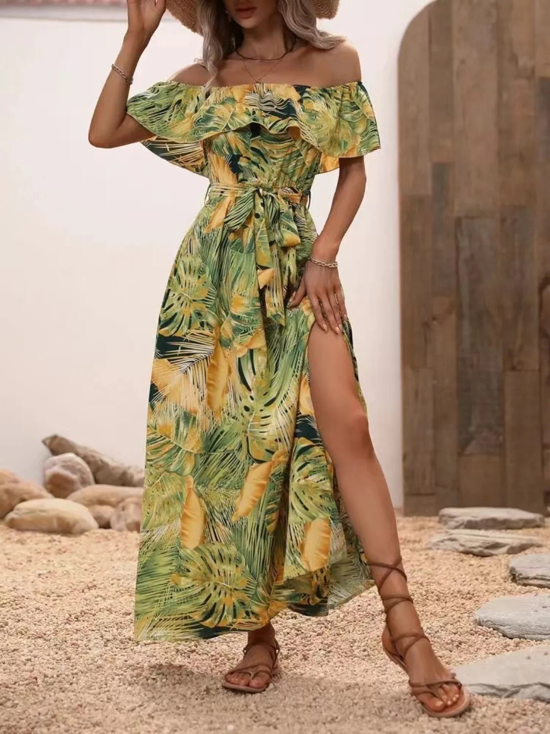 Ruffled Printed Off Shoulder Maxi Dress
